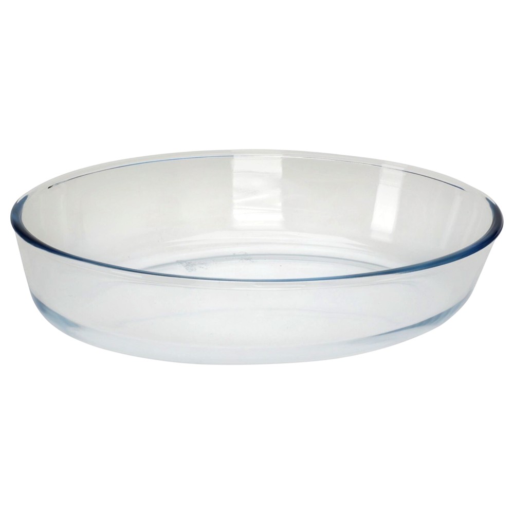 Oval transparent glass oven tray with a capacity of 2.4 liters and dimensions of 30.3x21.3x6.5 cm is a perfect tool for cooking and baking in small quantities. The durable glass material ensures even heat distribution and the ability to follow the cooking process without opening the tray. The oval shape and compact dimensions make it ideal for preparing various dishes. This product offers the perfect combination of functionality and elegant design for any kitchen.