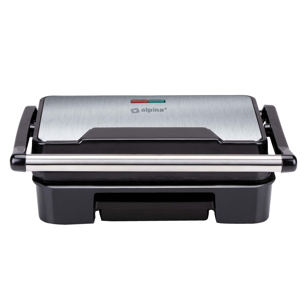 Prepare delicious grilled dishes such as a sandwich, panini, hamburger or bacon with this compact alpina contact grill. The 700W multi grill has a grill surface of 23 by 14.5 centimeters. When you switch on the sandwich maker, a red light will light up on top. As soon as it turns green, you know that the panini grill is ready for use. Thanks to a non-stick coating and removable drip tray, you can easily and quickly clean the sandwich maker after use. The alpina contact grill works on electricity. You only have to plug it into the socket to make the device work. As soon as you turn on the toast iron, a red light on top starts to burn. When it turns green after a while, you know that the panini grill is ready for use. Please note that the multigrill can get hot. Fortunately, you can safely open and close it thanks to the presence of 'cool-touch' handles. The anti-slip feet on the bottom of the sandwich grill ensure that it can stand firmly on any surface. The alpina panini iron has a ribbed blade with a non-stick coating. As a result, food does not stick to the multigrill and you can easily wipe it clean after use. There is a removable drip tray at the bottom of the contact grill. Waste, such as fat from meat or breadcrumbs, is collected here. You can also easily clean this removable drip tray after use. The plate of the contact grill is not removable and therefore not suitable for the dishwasher.
