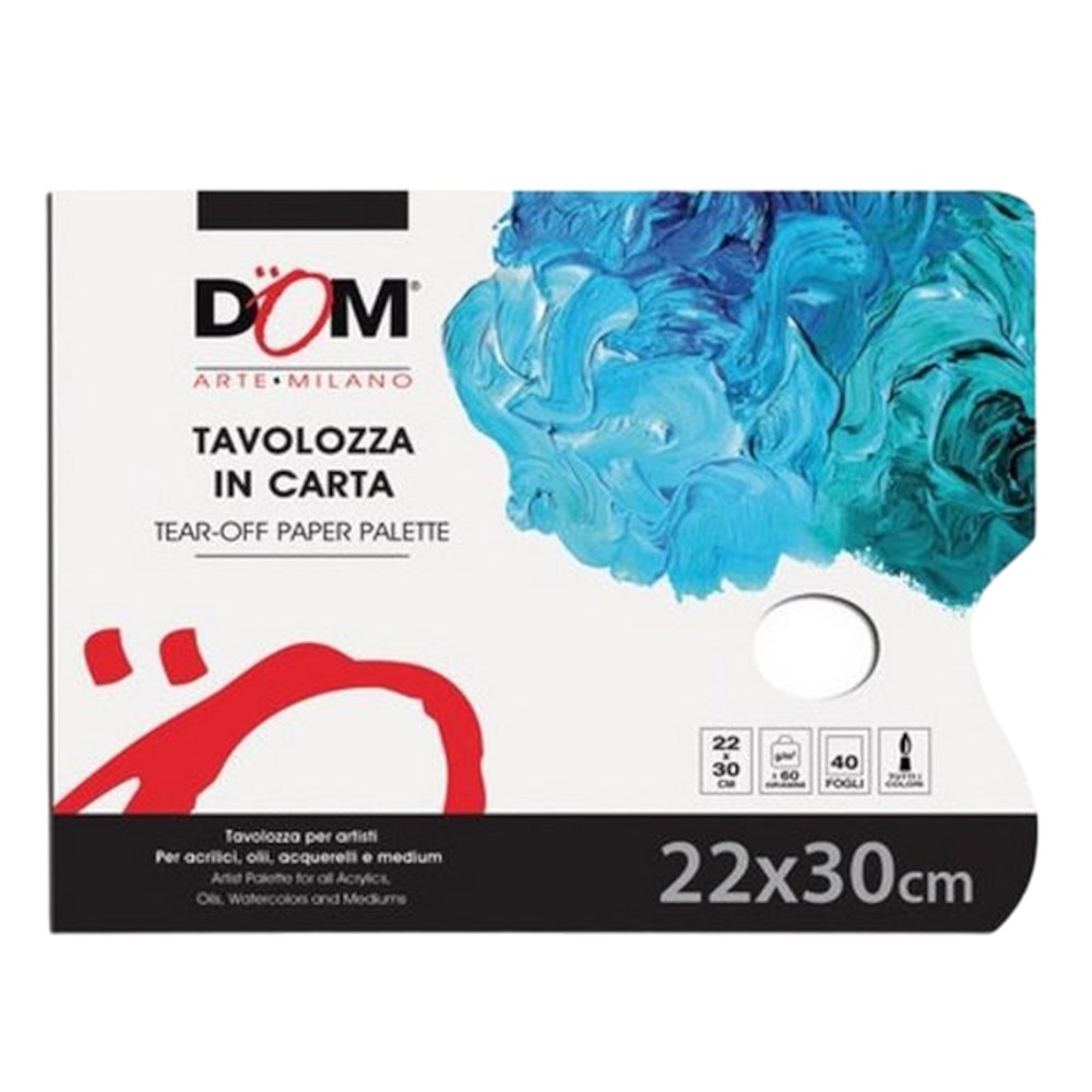 Practical and convenient tear-off palette for oil, acrylic, tempera, watercolor and medium colours, containing 40 sheets of special insulating paper. CM 22x30.