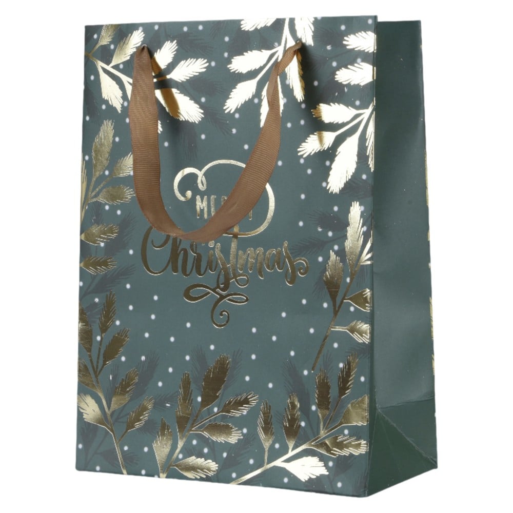 Paper gift bags, Christmas motif, green and gold, L10 x W26 x H32 cm