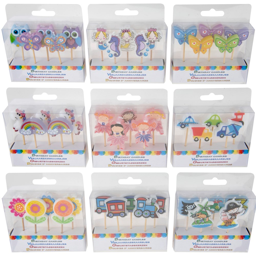 Candles for birthdays with special designs such as: flowers, pirates, butterflies, etc.. With these candles, your party can be unique. One package contains five candles.
