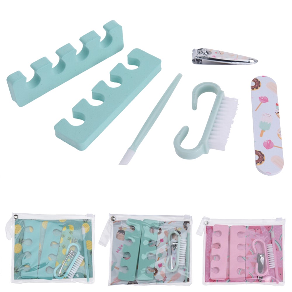 Pedicure set, which contains a nail clipper for strong nails and toenails, made of metal material, a nail file, a cuticle pusher, a brush for cleaning toenails, equipped with an ergonomic handle made of plastic material, which facilitates holding during use, and other accessories for foot care. The set can be used for cutting nails, cutting and pushing the cuticles, modeling the nails and fixing broken nails. This product has small dimensions, which make it suitable to take with you on trips.