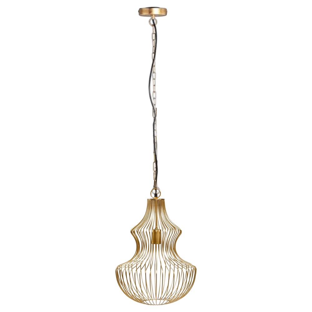 Pendant light E27, with a metallic body, gold color, with a diameter of 35 cm and a height of 47 cm. This light features an elegant and luxurious design, ideal for spaces that require a sophisticated and warm touch. The gold color provides soft lighting and a refined atmosphere, making it perfect for dining rooms, living rooms, or other spaces that demand style and elegance.