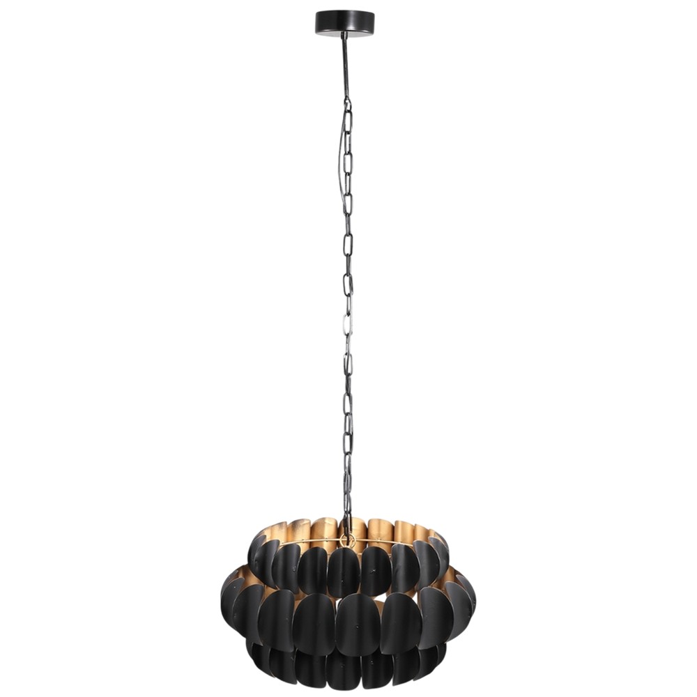 Pendant light E27, with a metallic body, black color, and dimensions of 29x52 cm. This light features a minimalist and modern design, suitable for various spaces such as kitchens, dining rooms, or living rooms. The black color and its dimensions make it an excellent choice for creating an elegant and sophisticated atmosphere, offering warm lighting and a unique style.
