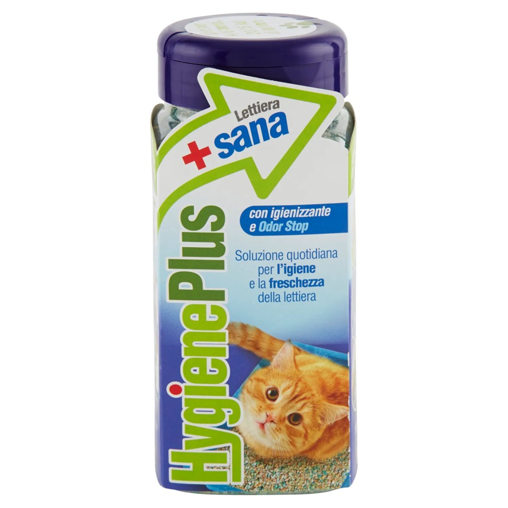 Hygiene Plus is a daily solution that guarantees the hygiene and freshness of litter with disinfectants and Odor Stop (patented molecule). A good drainage of the cat's litter box guarantees the elimination of bacterial and viral load, neutralizing bad odors. The subtle scent does not disturb cats' sensitive sense of smell. Tested in the laboratory at the Analysis Laboratory: Biotest, via Togliatti 73B - 06037 Taverne di Corciano di Perugia (PG) Composition: Minerals added with complex disinfectant 5 (medical surgical unit no. 19893 of the Ministry of Health), benzalkonium chloride, Sodium 2 - Biphenyls, dye, perfume, vegetable substances. Instructions for correct use - Spread Hygiene Plus evenly on the bottom of the clean tray - Throw away the garbage - Add Hygiene Plus to the surface of the litter and repeat daily Useful for up to 4/6 weeks. The product it contains is recommended for about 20-25 kg of litter. Jar 500 ml