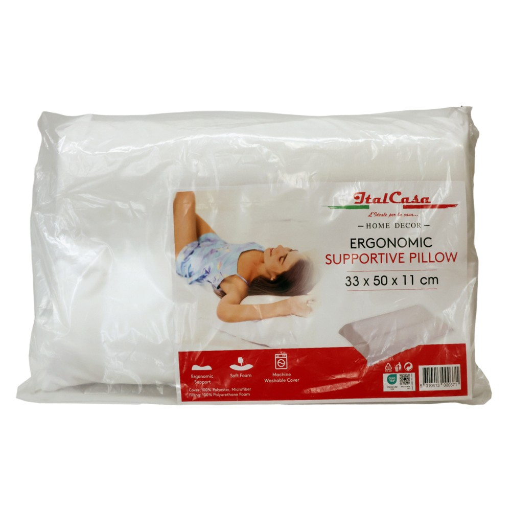 Ergonomic pillow for a relaxing sleep, the neck rests gently on the pillow. The high shape of the pillow makes it convenient to place the neck while sleeping. Contoured side layers improve breathability for a more comfortable sleep. Made of soft polyurethane material, 100% polyester microfiber with zipper on the side.