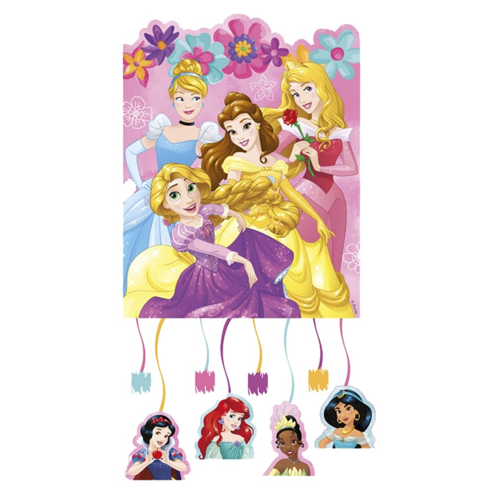 Pinata, Princess, is a pinata designed with a princess theme. A pinata is an object that can be filled with sweets or gifts and is traditionally part of birthday and other holiday themed parties and games. This product is suitable for use at birthday parties, princess themed parties, or other festive events where it is desired to organize a game and fun for children.