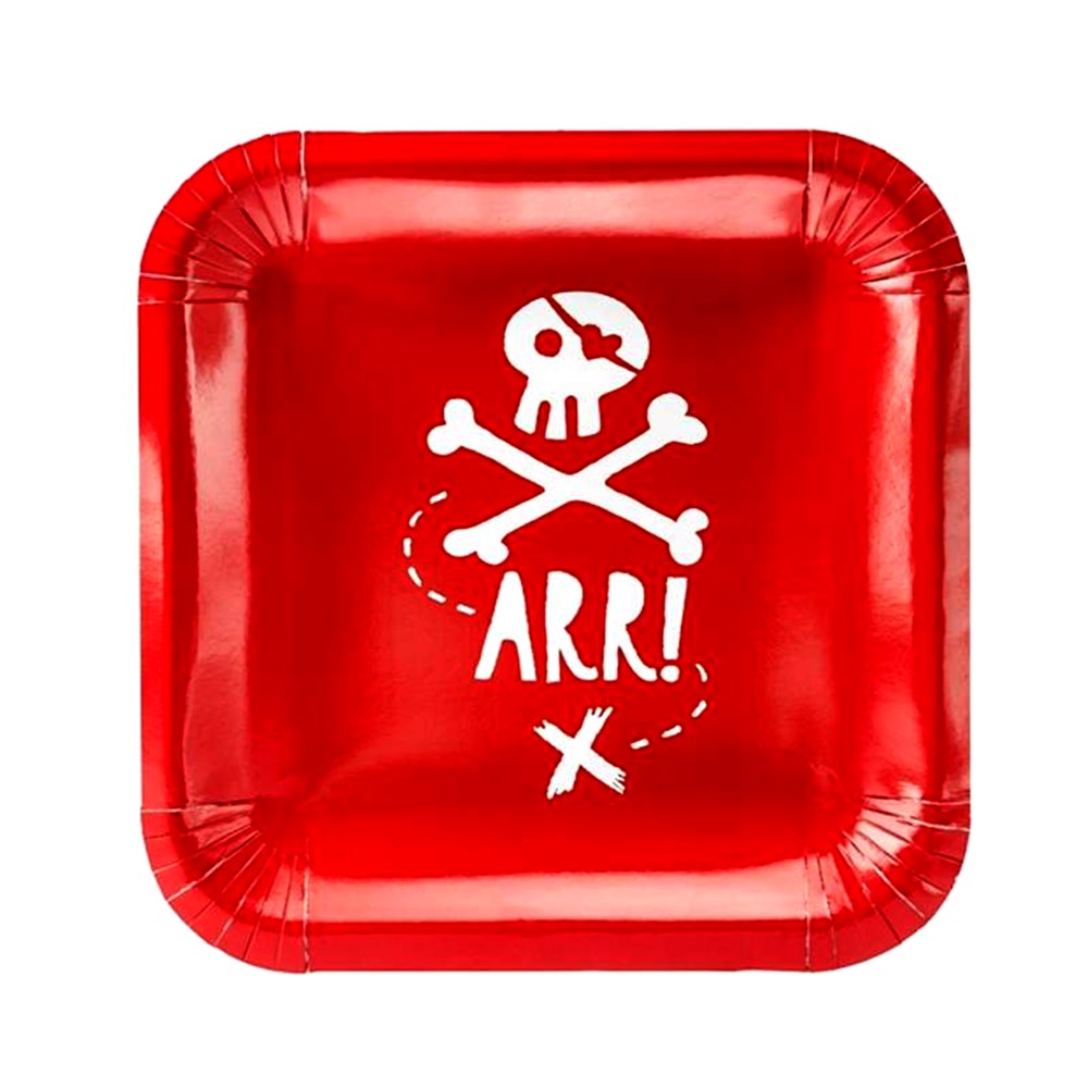 Plate, "Pirates", 20x20 cm, paper, red, 6 pieces