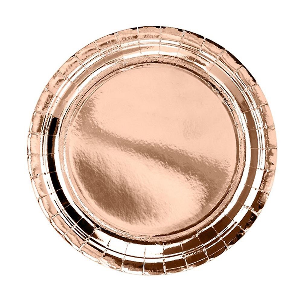 Golden rose plate with shiny holographic foil. Decorate your table with this golden rose themed plate. The plate has a size of 23 cm, and there are 6 plates in the package.
