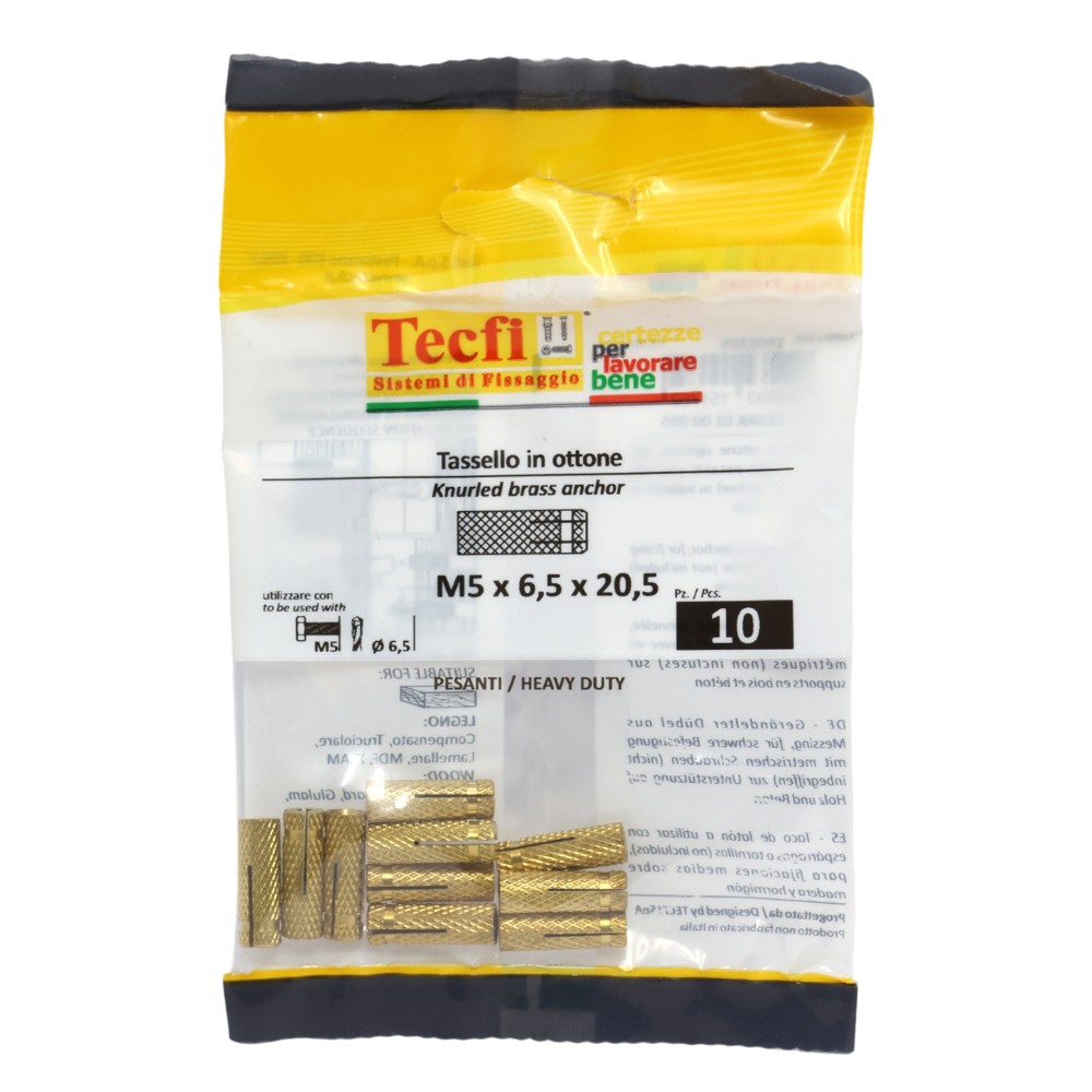 Plug brass anchor, M5(Ø6,5)x20,5mm, Bag 10