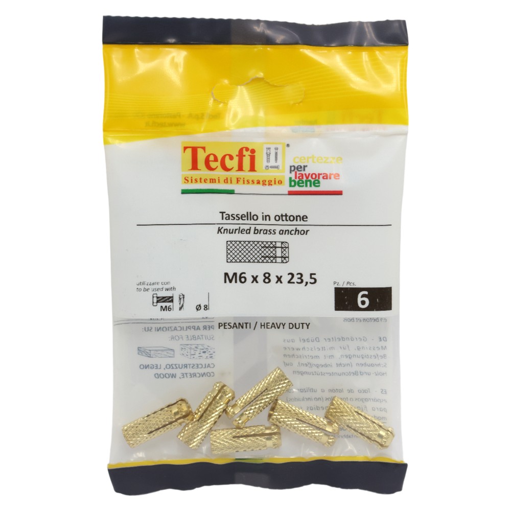 Plug brass anchor, M6(Ø8)x23,5mm, Bag 6