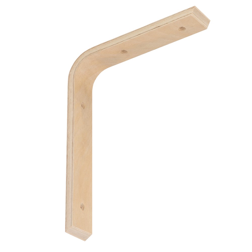 Plywood bracket, made of beech wood material, in natural color, with dimensions of 25x20 cm, which serves as a functional accessory for different environments. The constituet material is resistant to use and heavy weights, as well as it can be easily coated with any colour of paint, varnish or wood stain. It is used for wall mounting of self-supporting shelves, made of the same material, and it can find application in professional and non-professional environments.