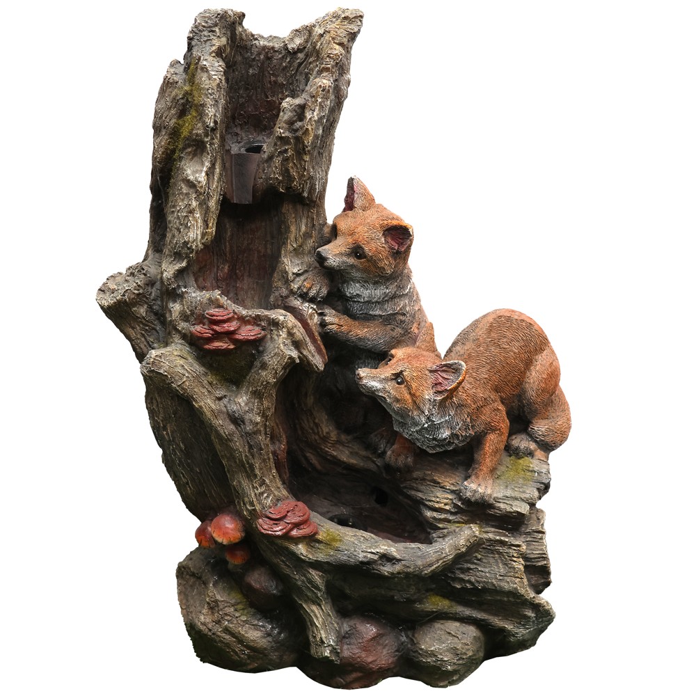 Polyresin fountain "Fox", W/two LED with water pump 10m cable. Product size:43x28x58cm. They have the appearance of natural stone. To add a relaxing and beautiful element to your surroundings and to bring nature near you, this fountain is the solution. They can be placed inside or outside.