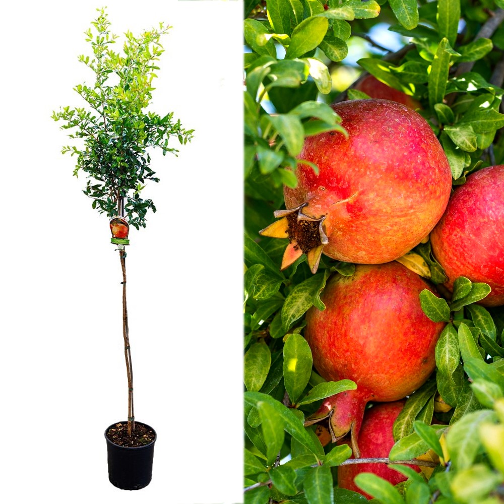 The pomegranate (Punica granatum) is a widely cultivated deciduous shrub grown for its tasty fruits, but also ornamentally as a small tree. In summer, orange in red, funnel shaped flowers are produced, followed by round edible fruit. For best results, grow Punica granatum in well-drained soil in full sun. Pomegranates need a long, hot summer to produce fruit and a temperature between 13C and 16C in autumn for the fruit to ripen. Prune only to remove dead or damaged material and mulch annually with well rotted manure or compost. Pomegranates are hungry trees, so mulch annually with well rotted manure or compost to maintain soil nutrient levels.