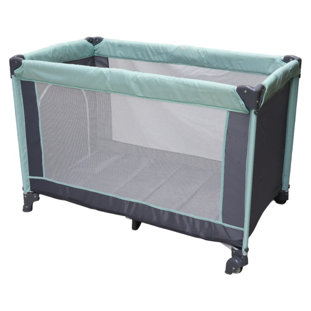 Single-level portable bed with support structure made of durable metal and plastic material and lining of anti-allergic and antibacterial polyester material. It can be used as a children's bed, as a playground and as an easily foldable and compact portable bed to take with you on trips. This product is suitable for children aged 6 - 36 months, weighing up to 14 kg.
