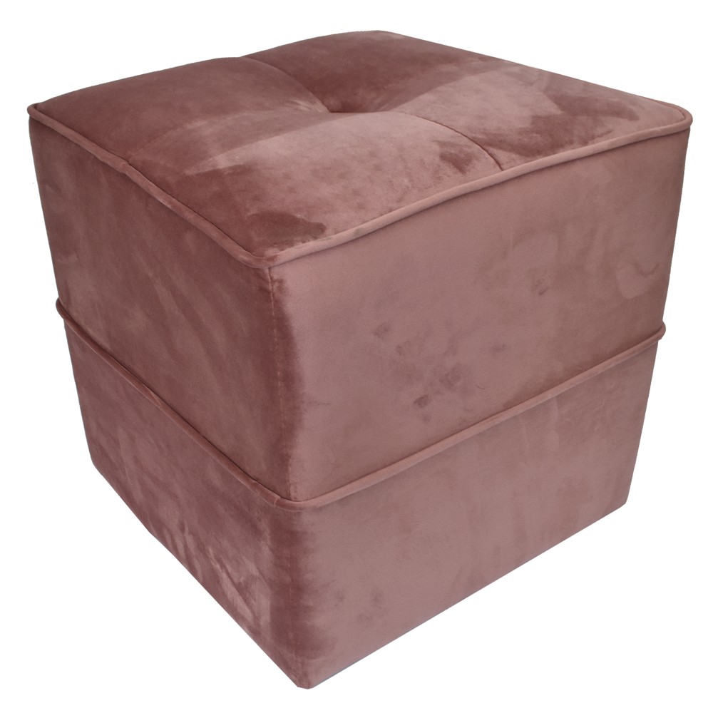 Pouffe, Reflect, wooden frame, velvet upholstery, pink, 39.5x39.5x40.5 cm