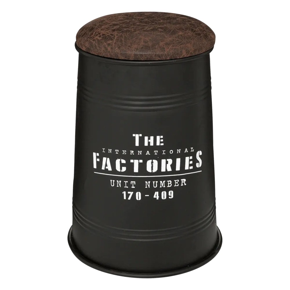 The Joao pouffee is made of a cylindrical container that has a removable sponge seat. Thanks to this, you can gain storage space. It is painted in matte black, decorated with inscriptions in vintage style.