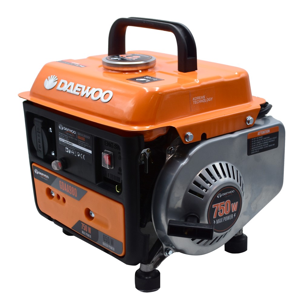 You're reviewing:Power generator, Daewoo, 750 W/650 W, Gasoline, 4.2 Lt, 230 V / 50 Hz, 3000 rpm, 17 kg, 5 h, IP23, 0.81 Lt/h
