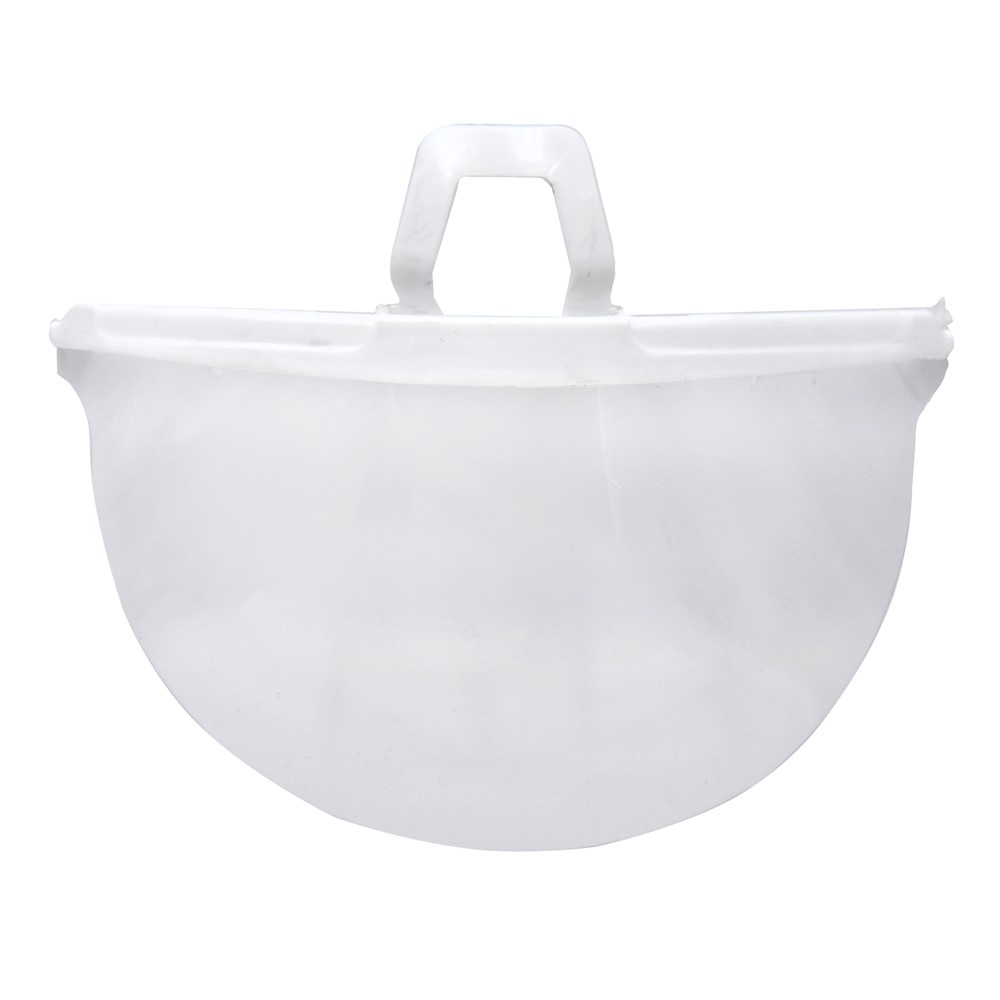 Transparent plastic mask for the face, which provides protection without covering the face. This product is suitable for use in offices and formal environments.