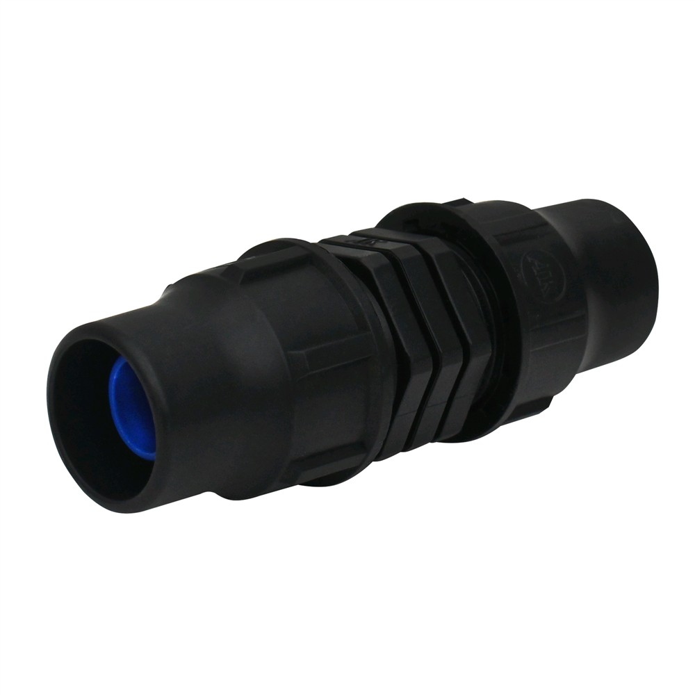 Coupling with faucet of PP 20x20mm. Used to installations water supply infrastructure lines, in irrigation and agricul, etc. Coupling network connects two pipes LDPE with diameter 20mm between each other andthrough coercive mechanical faucet. Manufactured with European standards, resistant to corrosive materials designed to withstand pressure up to 6 Bar.