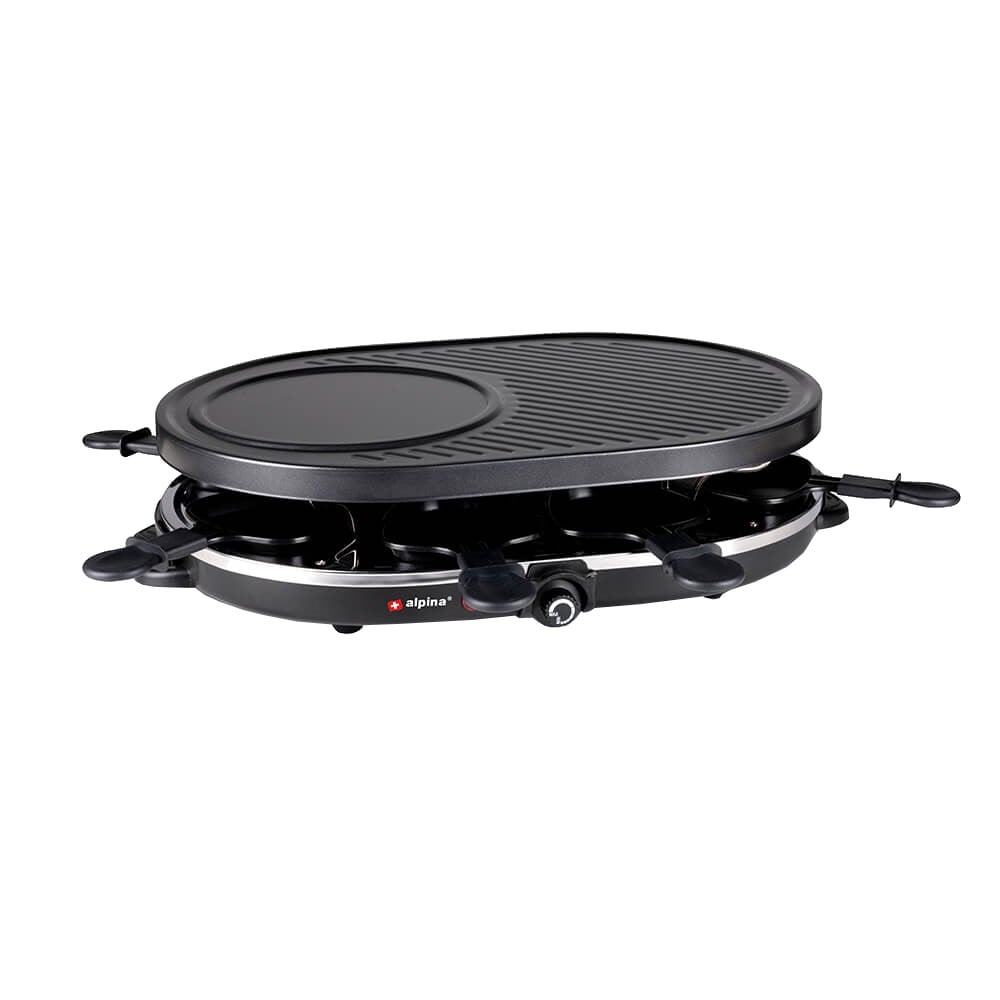 With the Alpina electric grill you can cook like a professional. The adjustable thermostat makes it easy to set the ideal temperature for each dish. Whether meat, fish, potatoes, bread or vegetables, any food is prepared on both sides at the optimum temperature. The flexible connection adapts to the thickness of the food to be grilled. Sloping grill plates with a grease drain allow for low-fat cooking, and two grease traps allow leaking fat to be disposed of simply and hygienically.