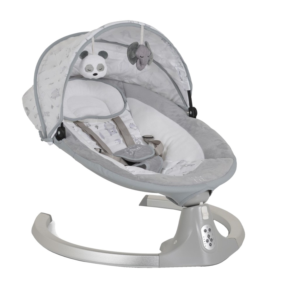 Electric relaxation chair for babies, made of aluminum base material and hypoallergenic textile for children. The chair consists of 5 swing levels, 12 quiet melodies with adjustable volume. The chair also has an insect net, and toys hanging on it. It has a 3-point safety belt, and is suitable for children with a maximum weight of up to 9 kg.
