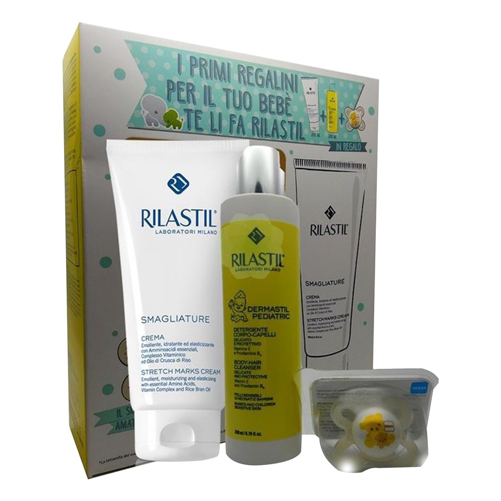 Pack of 3 wonderful gifts for mothers and babies: RILASTIL SMAGLIATURE STRETCH MARKS CREAM, body and hair cleanser for the baby, LIE BIPPER