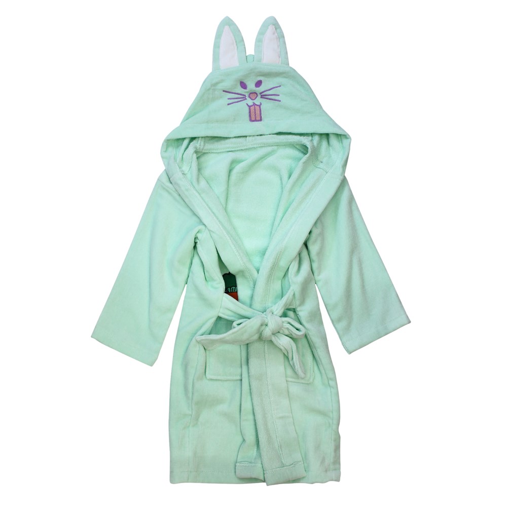 Rodishan for children made of 100% cotton material, soft and absorbent. Equipped with hood with embroidery and earrings, belt and 2 front pockets. It is washed in the washing machine and stays soft after many washes. Very good water absorber. Green color