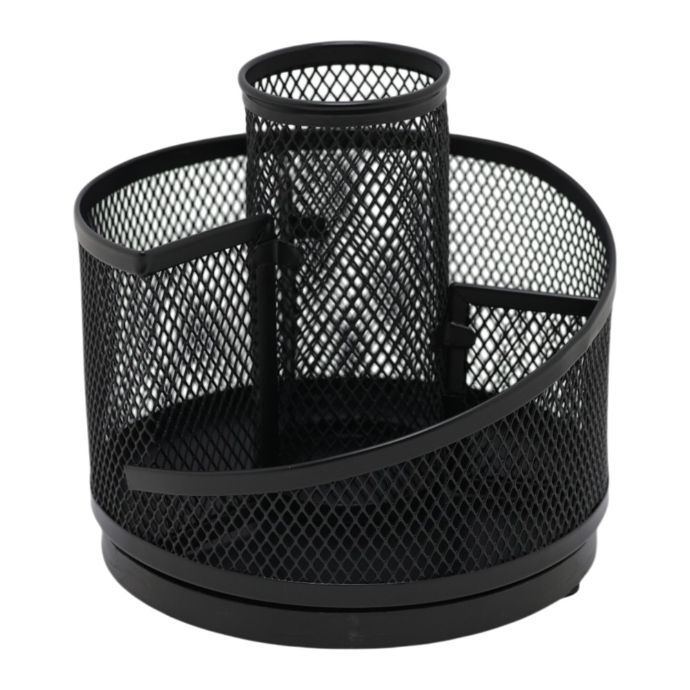 Keep your desks neat and tidy with this rotating pen organizer. Made of durable metal, this organizer offers durability and longevity, making it the ideal solution for offices, schools or personal use. The practical rotating design allows you to have easy and quick access to any pen, pencil or other accessory, without wasting time. The classic black color gives a professional and modern look to your workspace.