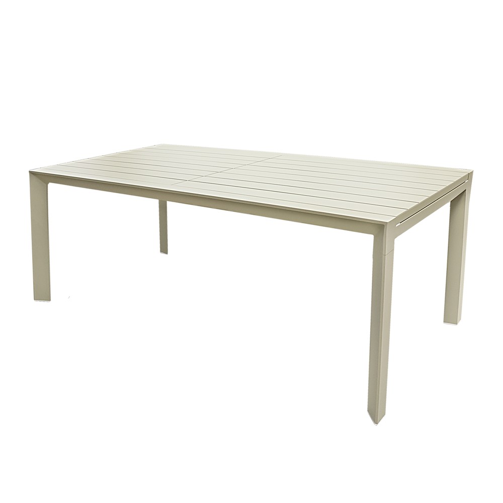 Built from solid aluminum and painted with the "electrostatic" paint application process. With light weight. Impressive thanks to the practical size. The extension table offers enough space for spontaneous visits or large family celebrations and becomes the center of activity. The basic size of 200x98.5xH76 cm offers space for 8 people. The upper part of the table can be easily expanded by means of the extension mechanism, making this table with a total length of 300 cm, which can offer space for accommodation up to 12 people.