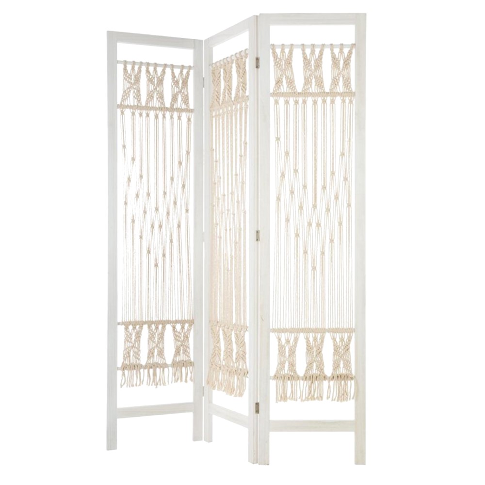 The bohemian style room divider is suitable for diving an environment into 2 parts. The knitted pattern and with a frame completely painted in a bright color allows it to easily fit into any type of decor.