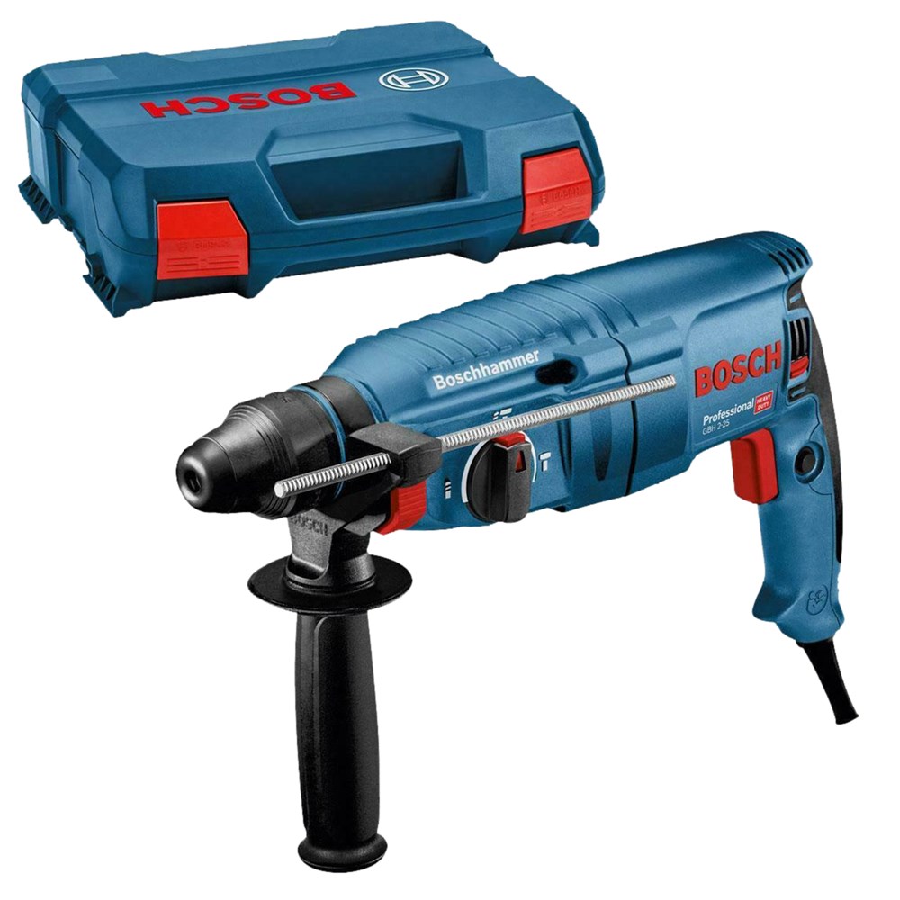 The rotary hammer with SDS-plus GBH 2-25 Professional is the fast all-rounder hammer for daily use.It has a powerful 800-watt motor and impact force of 2.5 joules for a fast drilling rate.It has rotation stop and chiselling, an easy-to-change toolholder and auxiliary handle for a secure hold. Also it has an overload clutch and rotating brush plate for equal power in forward and reverse rotation.It has drilling diameters 13 mm for metal, 25 mm for concrete and 30 mm for wood.