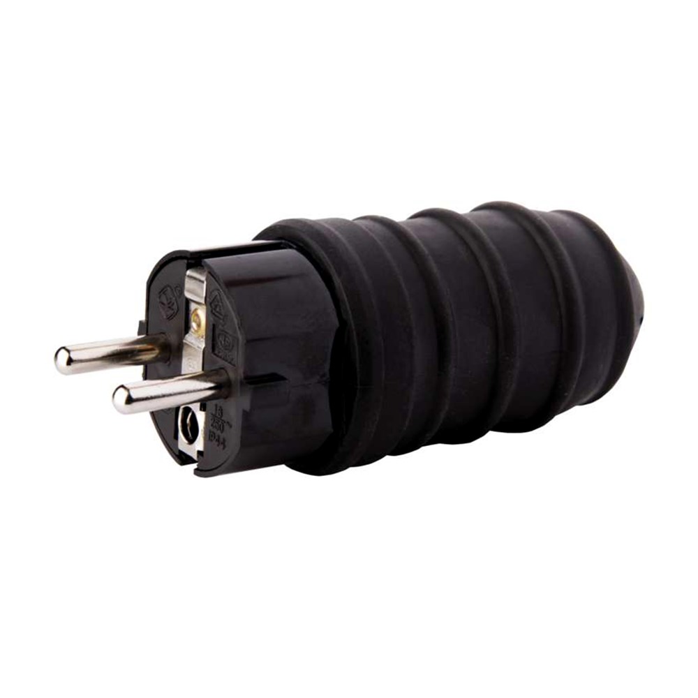 Rubber plug for mobile extension leads. Designed for connecting electrical appliances which require higher protection rating (even outdoors).
