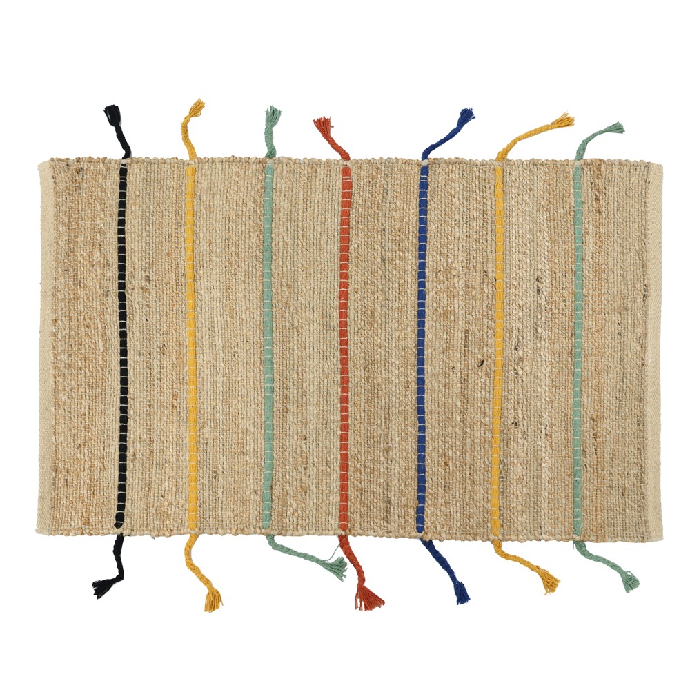 "The featured rug is an important product for your home, designed to enhance the aesthetics and style of your room. This rug is made of 90% jute and 10% cotton and is beige in color with stripes. The dimensions of the rug are 55x90 cm.