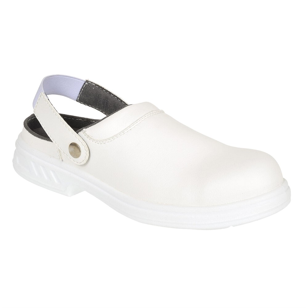 Safety sandal S2/white in size 38. The sandal is suitable for use by cooks. Its protection is safe against the fall of the knife in the leg.