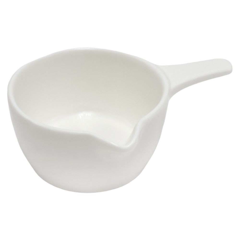 The bowl served for sauce, made of ceramic and in white color, has the dimensions Diameter 9.5 cm and height 3.5 cm. This serving bowl is perfect for holding and serving sauce in a stylish and organized way on the table. Its attractive shape and simple design make it suitable for any setting, from formal meetings to more informal events. Ceramic materials make it durable and suitable for everyday use, while the white color gives a clean and fresh touch to the design of the table.