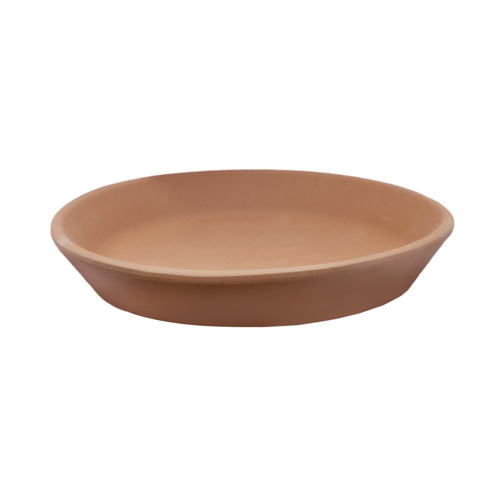 Special saucer designed to serve as a base for flower vases. This is made of high quality ceramic, with a terracotta color that gives it a warm and natural look. The saucer has a diameter of 25 centimeters and a height of 5 centimeters, making it suitable for big flower pots.