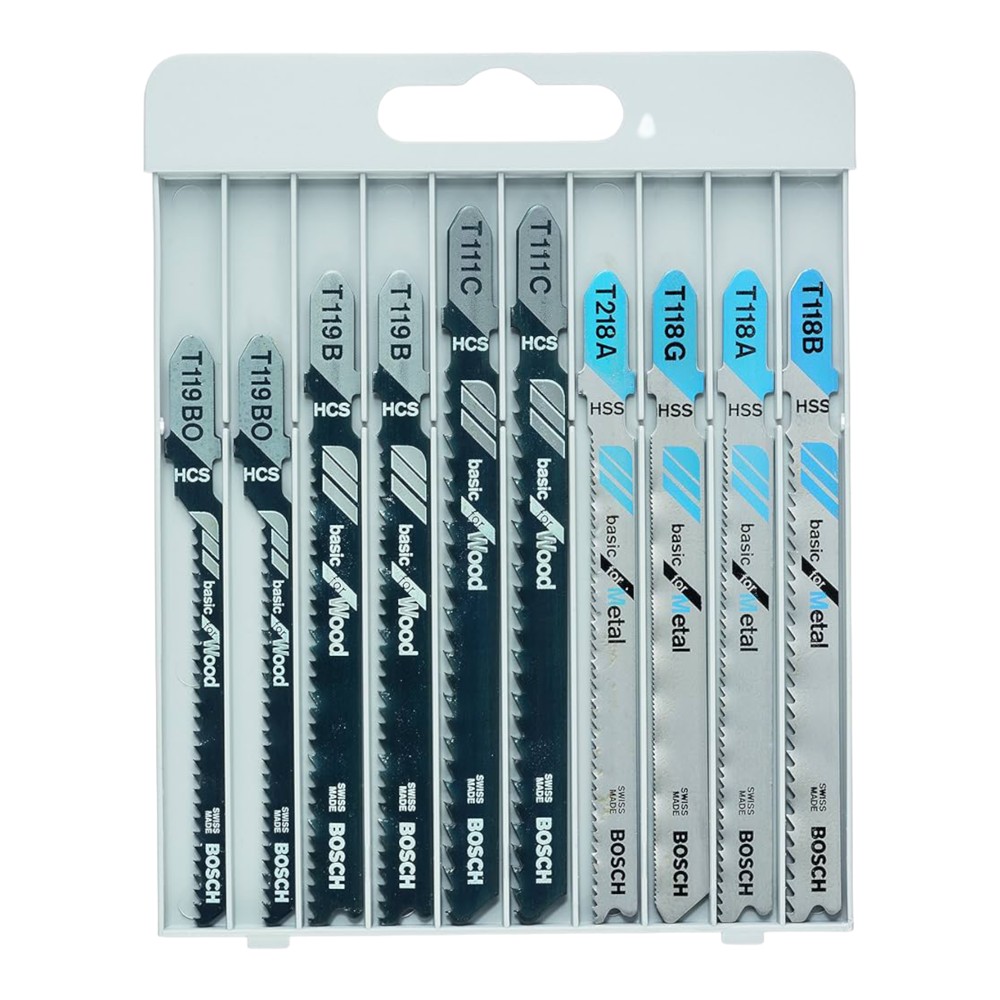 The set includes blades for straight and curved cuts in softwood, ensuring you have the right tool for a variety of different woodworking jobs. In addition, the kit is equipped with blades for metal parts, providing reliable results for your metalworking projects. All blades are compatible with any type of saw being used, offering you flexibility and convenience. Set includes 2x T 119 BO for Wood, 2x T 119 B Basic for Wood, 2x T 111 C Basic for Wood, 1x T 218 A Basic for Metal, 1x T 118 G Basic for Metal, 1x T for Metal, and 1x T 118 B Base for Metal.
