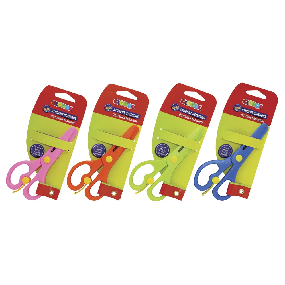 Scissors for kids, made of durable plastic material, 15 cm long, in assorted colors. The scissors have handles with ergonomic properties for easier use and a round tip that protects children from injury during use. It is used for cutting paper and thin cardboard, as well as for cutting wrapping paper, textile pieces, etc. This product is suitable for use by children over 4 years old.