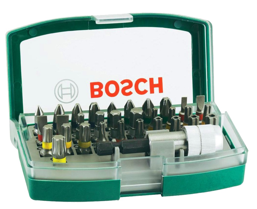 Screwdriver Bit Set (32 Pieces). The tip of a screwdriver is thermally treated to increase the time of use. Built with special steel and cobalt coating is very stable and provides a rapid and efficient screw.The screws used for mounting on surfaces with different materials. Kit Contents: 1 x universal holder, 4 x PH Bits 1/2/2/3, 4 x PZ Bits 1/2/2/3, 4 x SL Bits 3/4/5/6, 4 x HEX Bits 3/4/5/6, 8 x TORX Bits 10/15/20/20/25/27/30/40, 7 x TH Bits 10/15/20/25/27/30/40.