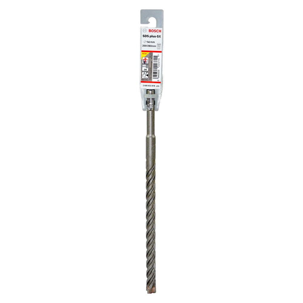 Bosch SDS-Plus-5X, 14x200x260mm Concrete drill bit good performance and stable during drilling in concrete and other construction materials. Designing with shaped top plate allows fast removal of drilling and dust.