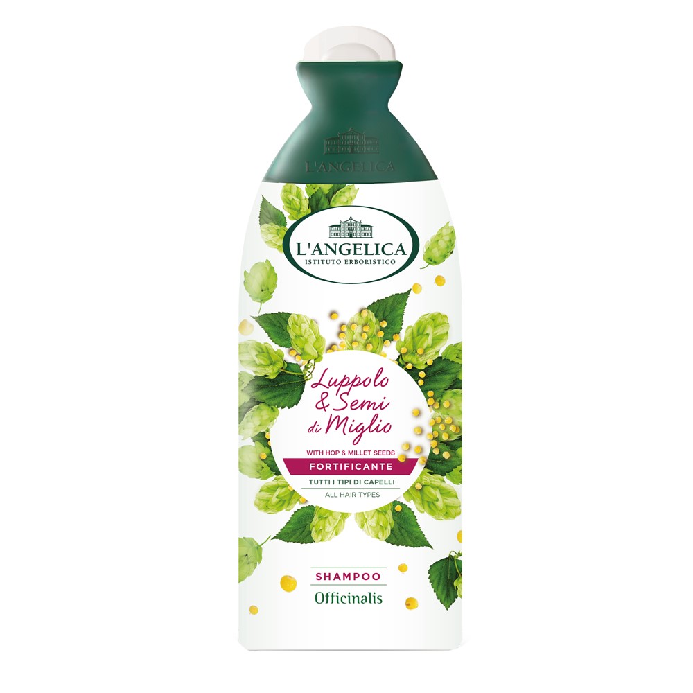 Officinalis fortifying shampoo, enriched with Mediterranean herbal extracts of hop and millet seeds, that stimulate scalp's metabolic functions. This product does not contain paraben, silicone or GMOs, it is suitable for frequent use and is particularly effective to fine and weak hair.