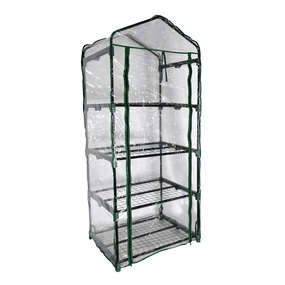 Greenhouse of flowers and plants with 4 shelves 69x49x160cm. Built with steel pipe structure and support leg of PVC, polyethylene transparent cover which opens and closes by means of the chain. Very suitable for various cultivated plants.