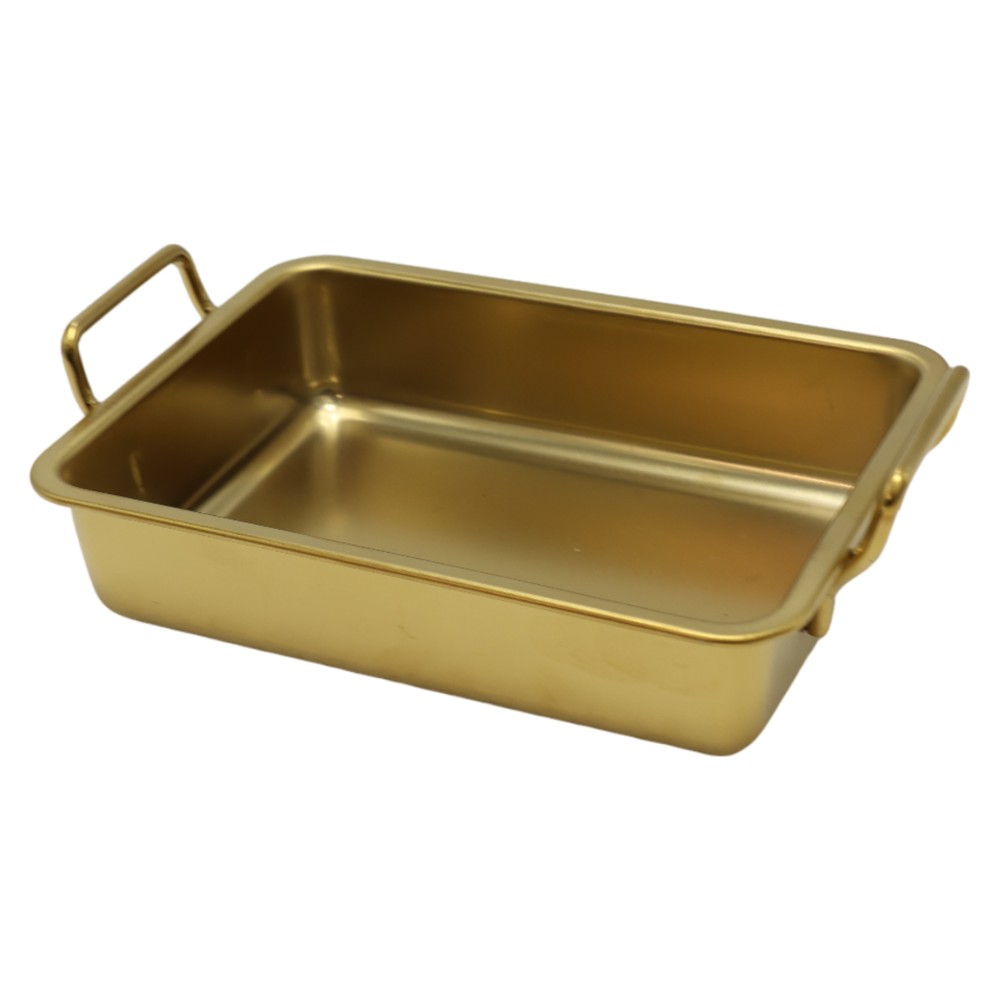 Metal serving tray with gold color, dimensions 11.5x15 cm. This tray is ideal for presenting and serving different foods in an excellent way.