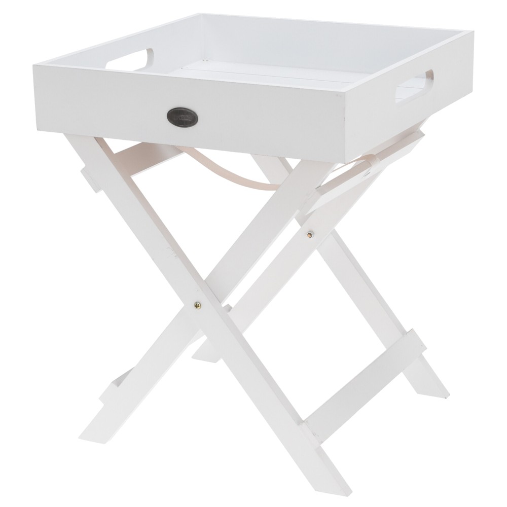 Serving tray, natural wood, White, 30x30x36 cm