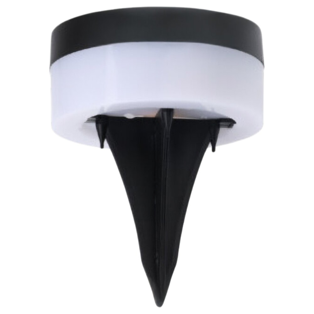 Set of 4 solar panel ground lights, black color, plastic material. Dimensions: 4x14 cm each. Warm light (2700–3000K), ideal for garden, path or outdoor lighting. Automatic charging during the day and turning on in the dark.