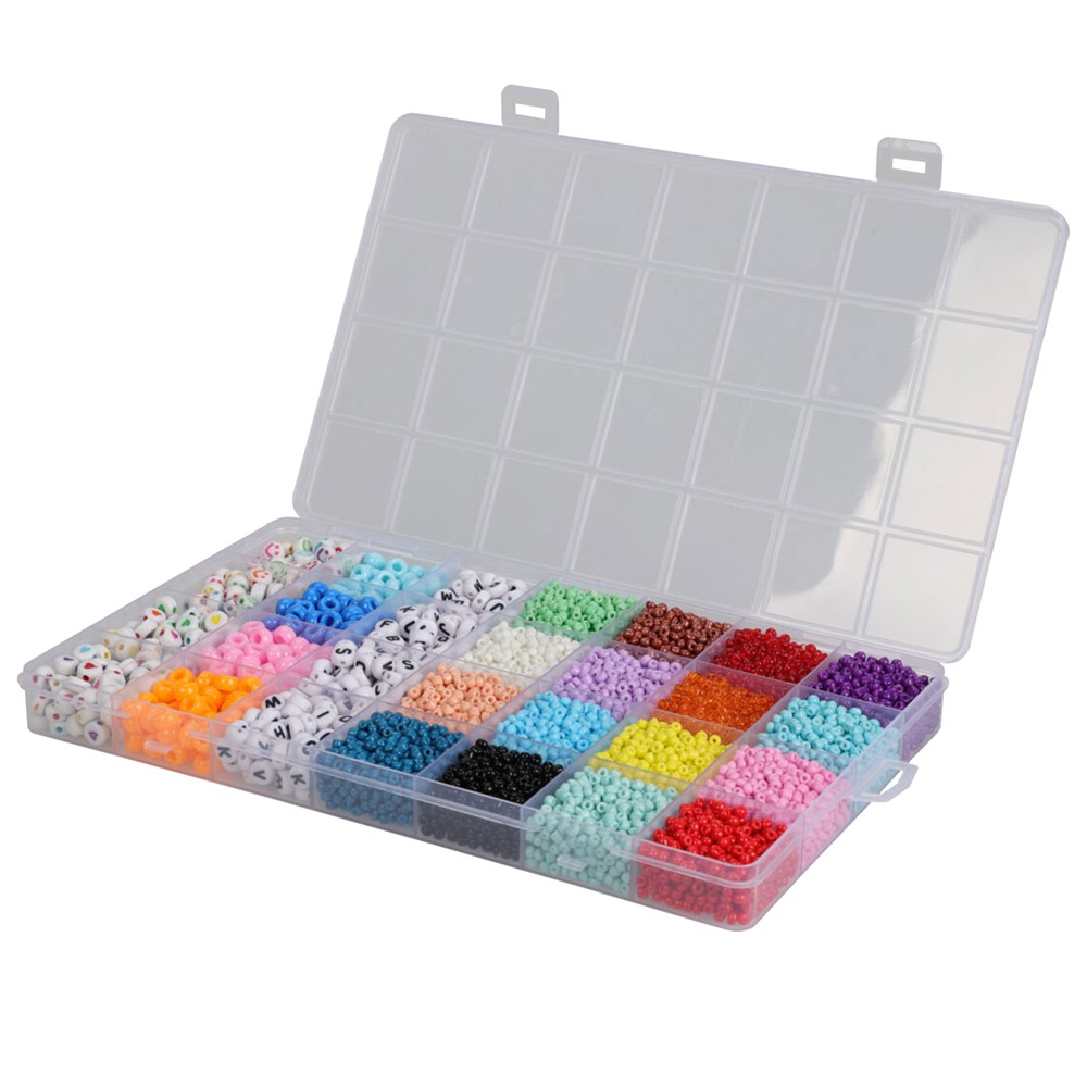 The beautiful craft beads are packed in a box with 28 different beads. The bead set contains letter beads, Smiley beads and smaller and smaller beads in different colors, totaling 440 grams. The plastic box measures 22x13x2cm and the box works great for storing them.