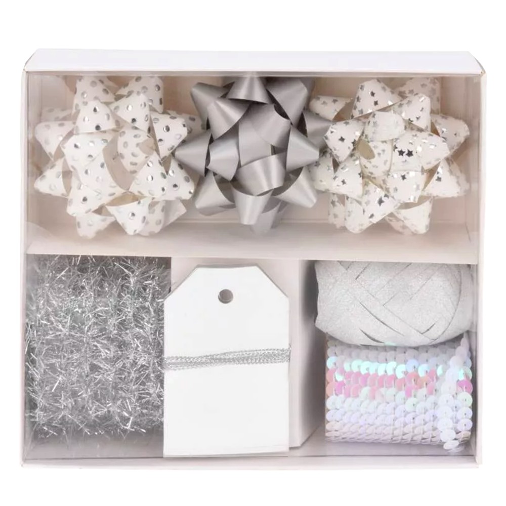 The set of decorative accessories for packaging is a collection suitable for packaging gifts or various items. This set contains various accessories, a durable and lightweight material, and offers a mix of decorative elements to add an elegant touch to the packaging.