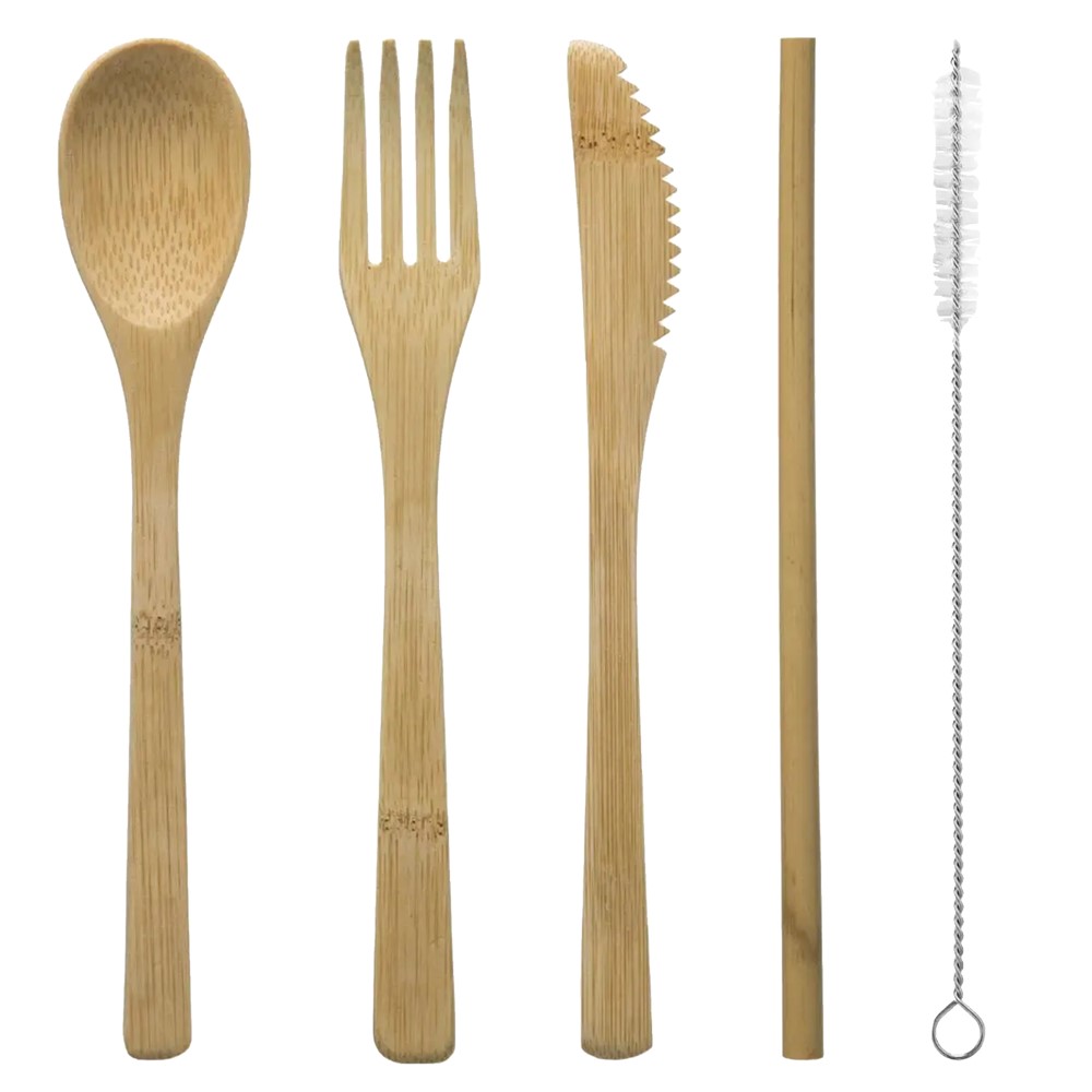 Set with spoon, fork, knife and cleaning accessories. Natural bamboo material, the set is also a decorative accessory.
