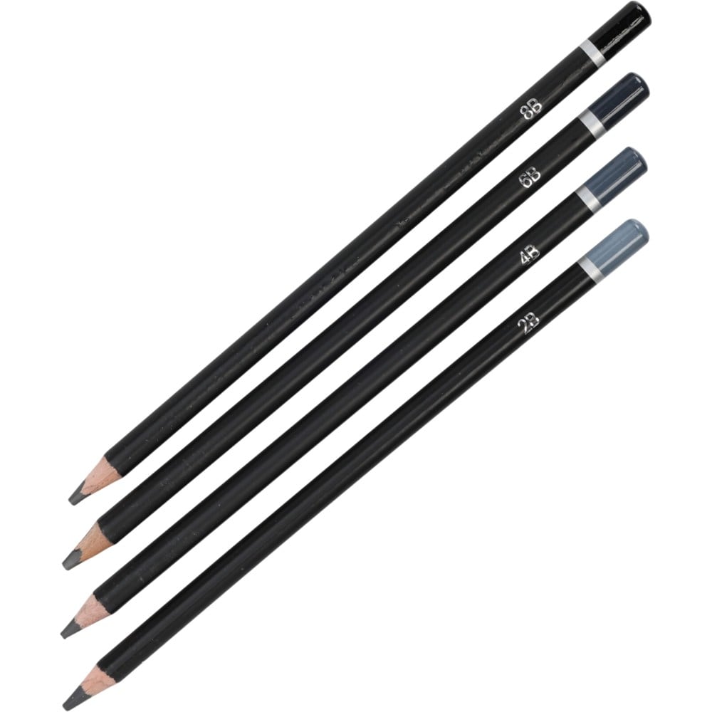 Set of pencils, Artist, 2B/4B/6B/8B, 4 pcs, black color, wooden material